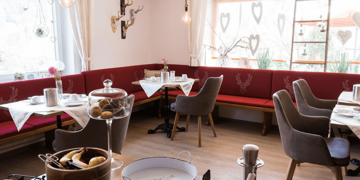 Unser Frühstück bietet Ihnen viele regionale Produkte, teils direkt von Nachbarn. Bei schönem Wetter können Sie dieses gerne in unserem großzügigen Garten genießen.
